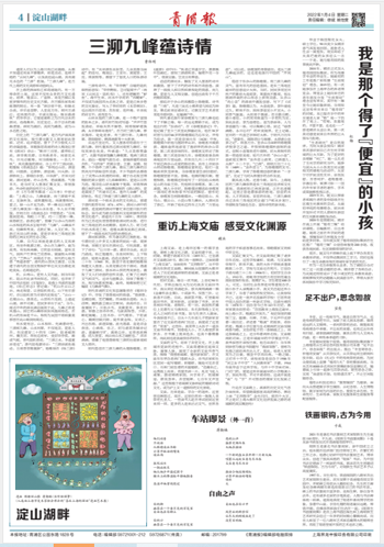 泖河是一个临水亲水的文化码头。那建于唐代乾符年间(874-879),泖河小洲中的泖塔,是宽阔的泖河中繁忙来往船只航行的标志,如今成为联合国教科文组织颁布的世界文化遗产。清道光十五年(1835),林则徐作为江苏巡抚曾登塔察看泖河的水势,进行长三角地区的水利勘察,组织人力、财力进行治水改造工程,造福太湖及吴淞江流域,留下了一段段水利为民的治理佳话。