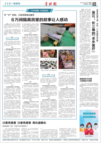 守“沪”时刻,好邻居伸出援手。除了派出援沪医疗队,深入方舱医院与社区与上海医护并肩战斗,这江苏、浙江紧急筹措的6万间隔离房里,是细致的关怀、温暖的服务,守望相助让心越靠越近、情越来越浓。