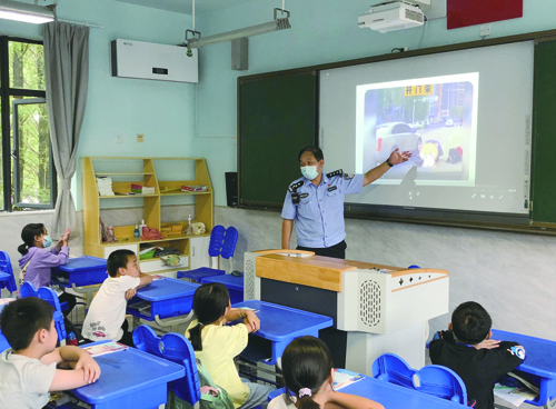 随后,由金泽派出所徐巧生警官给学生们详细讲解日常交通安全知识,重点提醒如何规避道路上的各种危险,让学生们提高“知危险、会避险”的自我保护能力。