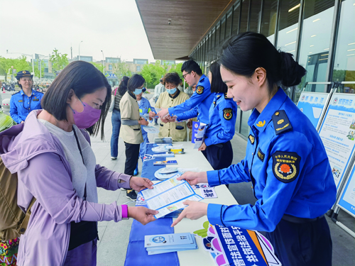 活动当日,青浦城管执法局联合朱家角城管中队在古镇游客中心设点,结合景区游玩路线及相关点位介绍,通过展板展示、发放宣传册、现场解读等形式,对城管涉景区日常执法中常见的违法行为和事项开展法治宣传。针对游客关注的住房租赁、占绿改停车位等热点问题,工作人员进行专项答疑,向游客普及法律知识,倡导维护整洁、安全、健康的景区法治环境。