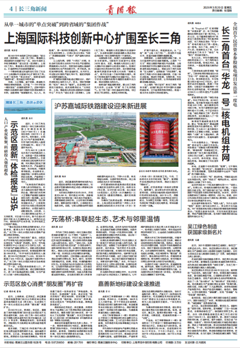 沪苏嘉城际铁路是推进示范区基础设施互联互通的标志性工程,线路全长170公里,设计时速160公里,由上海段(示范区线)、江苏段(水乡旅游线)以及浙江段(嘉善至西塘线、嘉兴至枫南线)组成。